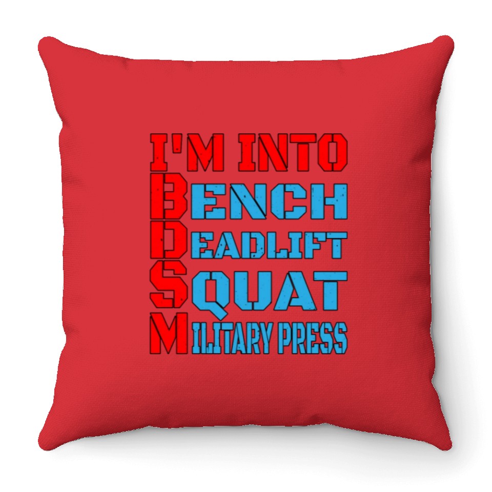 Shop for attractive Im Into BDSM Bench Squat Deadlift Military Press14 Throw Pillows or see more Throw Pillows products on https://printblur.com right now!