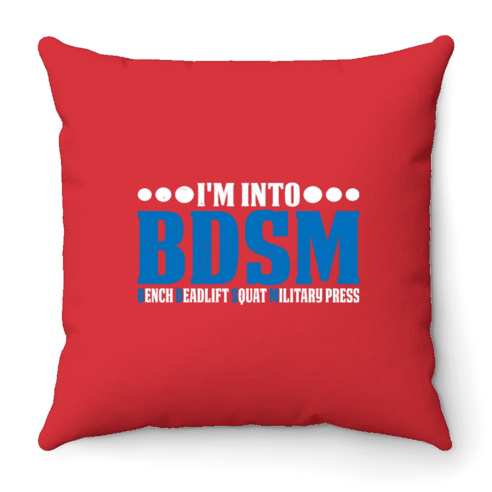 Buy eye-catching Im Into BDSM Bench Squat Deadlift Military Press20 Throw Pillows or see more Throw Pillows products at Printblur shop now to explore many surprises from our shop!