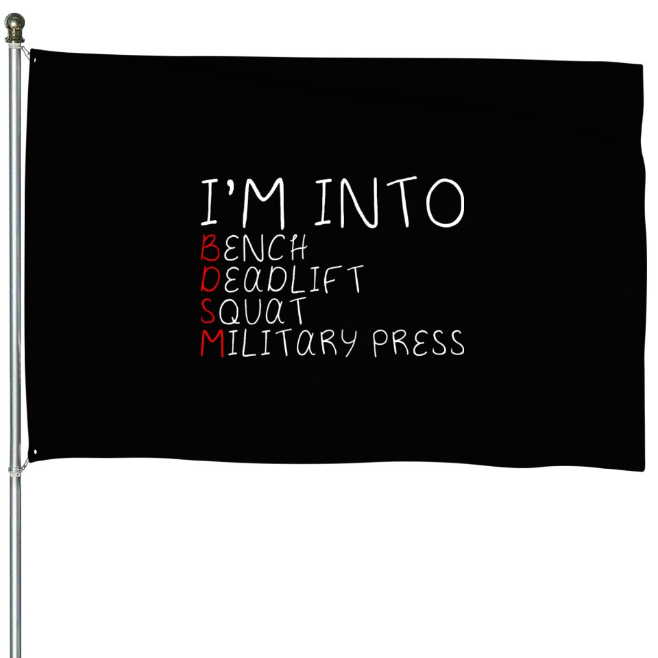 Shop for attractive I'm Into BDSM Bench Squat Deadlift Military Press5 House Flags or see more House Flags products on https://printblur.com right now!