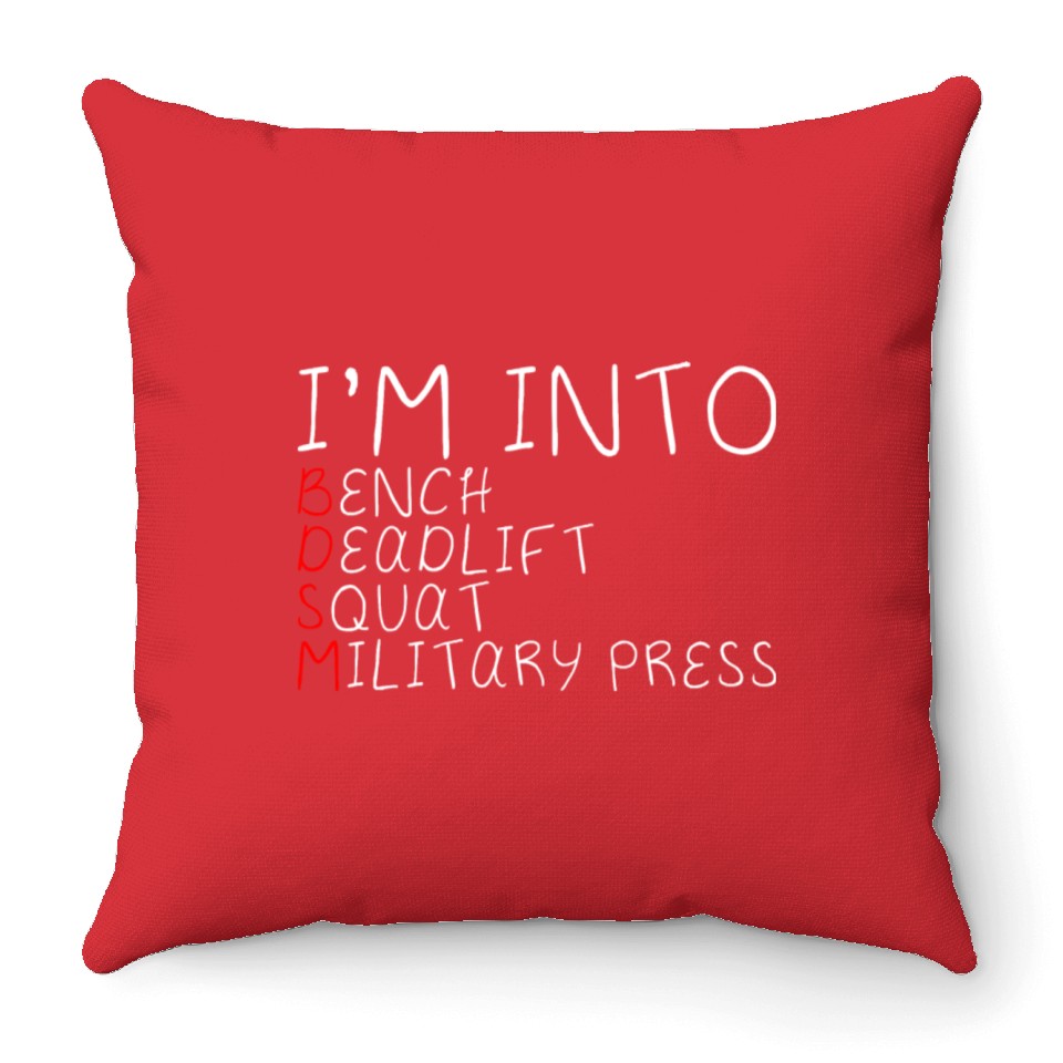 Shop for impressive I'm Into BDSM Bench Squat Deadlift Military Press5 Throw Pillows or see more Throw Pillows products right now on Printblur to enjoy your happiness!