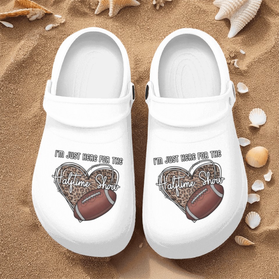 Buy eye-catching I'M Just Here For The Halftime Show Football Nurse Clogs or see more Nurse Clogs products at Printblur shop now to explore many surprises from our shop!