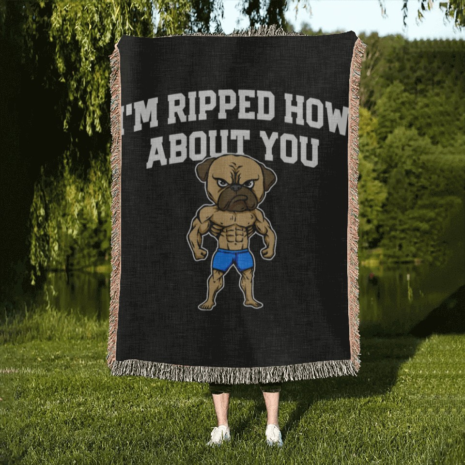 You are viewing an exclusive and elegant product Im Ripped How About You Funny Workout Humor Gym Woven Blankets For Black belong theme Woven Blankets at Printblur