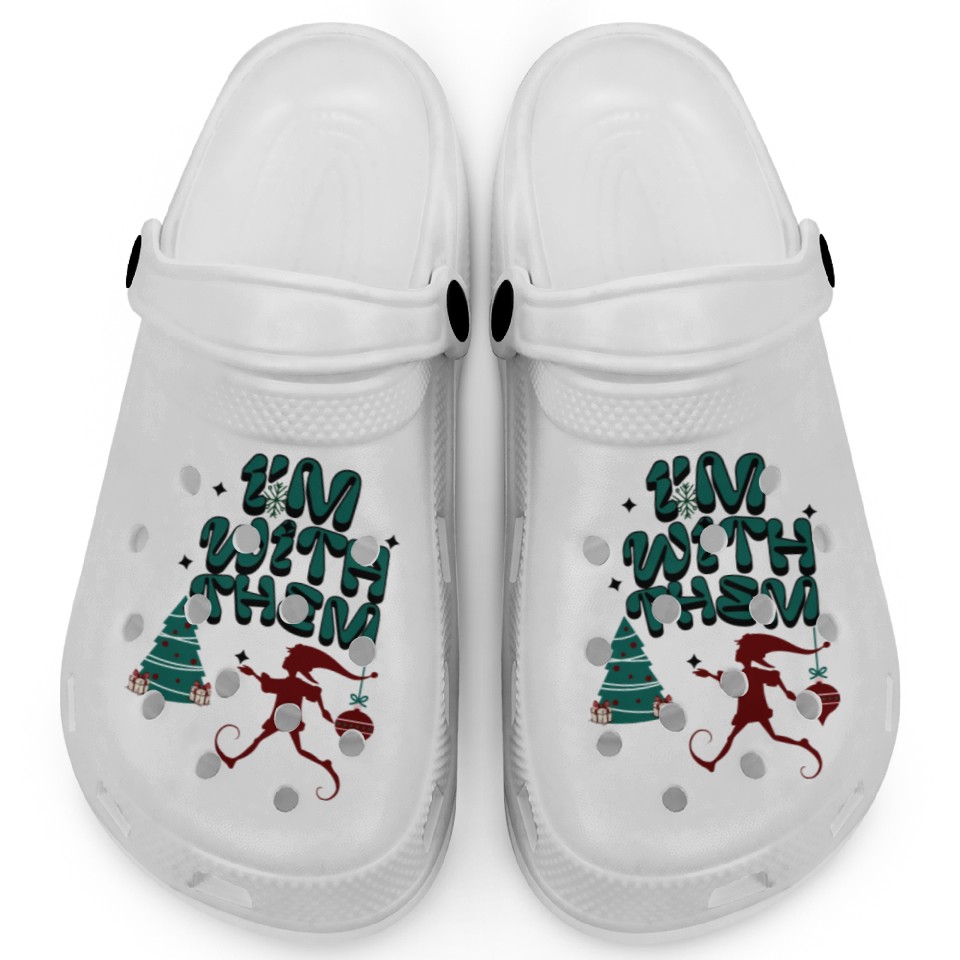 Shop for attractive "Im with them" Christmas Elf design Clogs or see more Clogs products on https://printblur.com right now!
