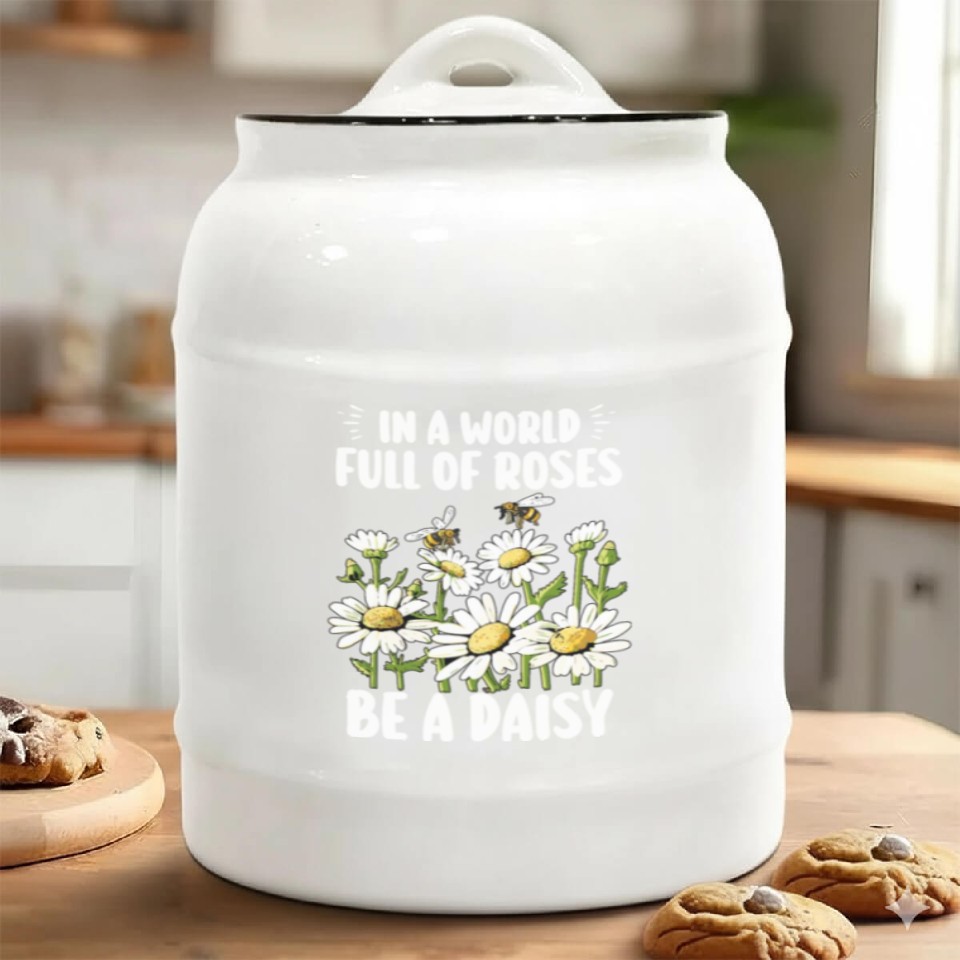 Buy eye-catching In A World Full Of Roses Be A Daisy Ceramic Cookie Jars or see more Ceramic Cookie Jars products at Printblur shop now to explore many surprises from our shop!