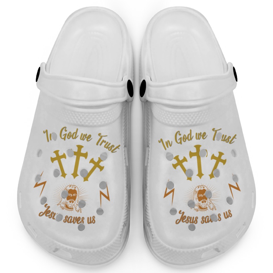 In God we trust Jesus saves us Clogs