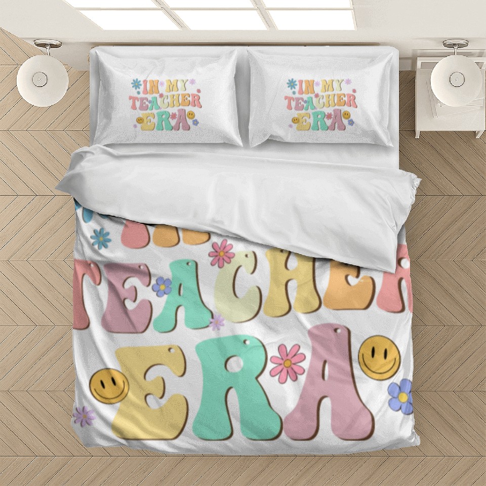 Buy eye-catching In My Teacher Era Back To School Retro Groovy Bedding Sets or see more Bedding Sets products at Printblur shop now to explore many surprises from our shop!