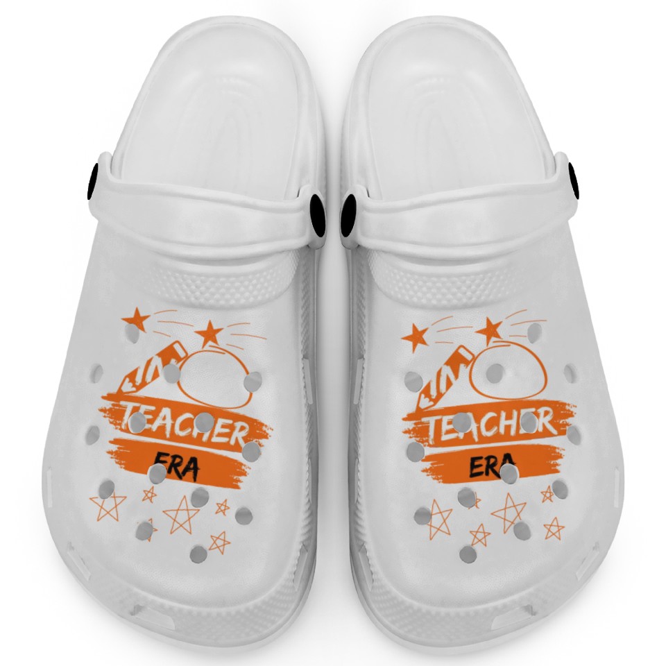 You are viewing one of the trendiest products In My Teacher Era First Day Of School Clogs For Kids WHITE belong theme Clogs at Printblur