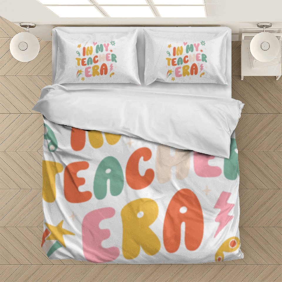 The product unique design you searched for is In My Teacher Era Groovy Bedding Sets For WHITE belong theme Bedding Sets at Printblur