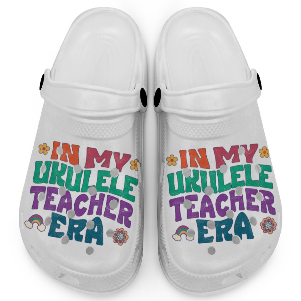 You are shopping for a stunning and trendy product In my Ukulele teacher era Clogs For Kids WHITE belong theme Clogs at Printblur