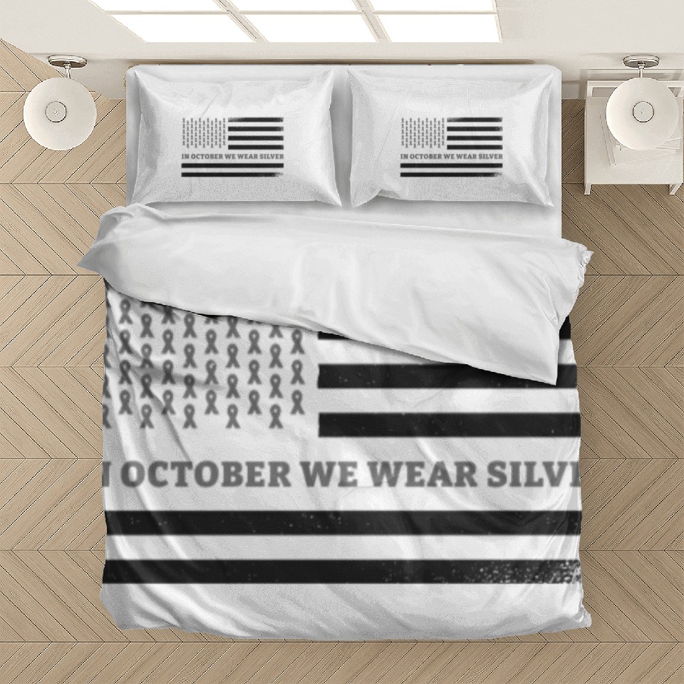Shop for impressive In October We Wear Silver American Flag Apraxia Bedding Sets or see more Bedding Sets products right now on Printblur to enjoy your happiness!