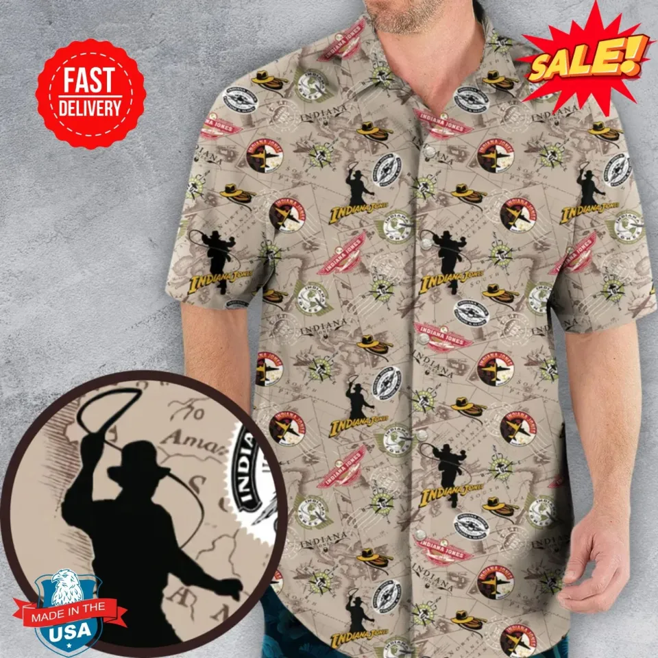 Own fascinating Indiana Jones Patterns Hawaiian Shirt or see more Hawaiians products now from Printblur shop to enjoy your shopping time!
