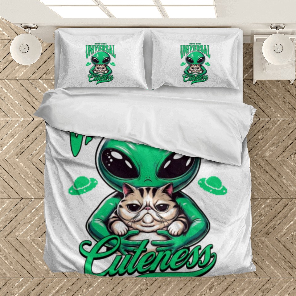 Buy eye-catching Intergalactic Cat and extraterrestrial Alien Bedding Sets or see more Bedding Sets products at Printblur shop now to explore many surprises from our shop!