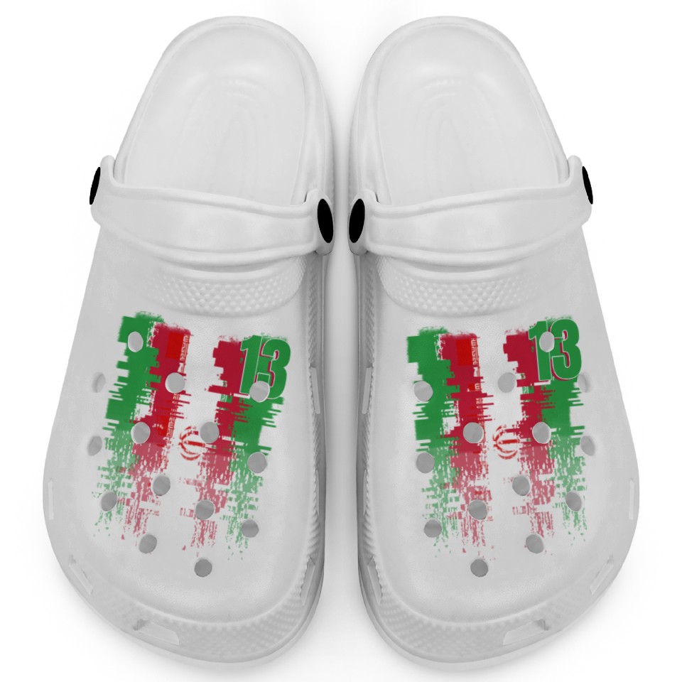 You're looking at the eye-catching product Iran Soccer team Jerseys Iran team 2022 number 13 Clogs For Kids WHITE belong theme Clogs at Printblur