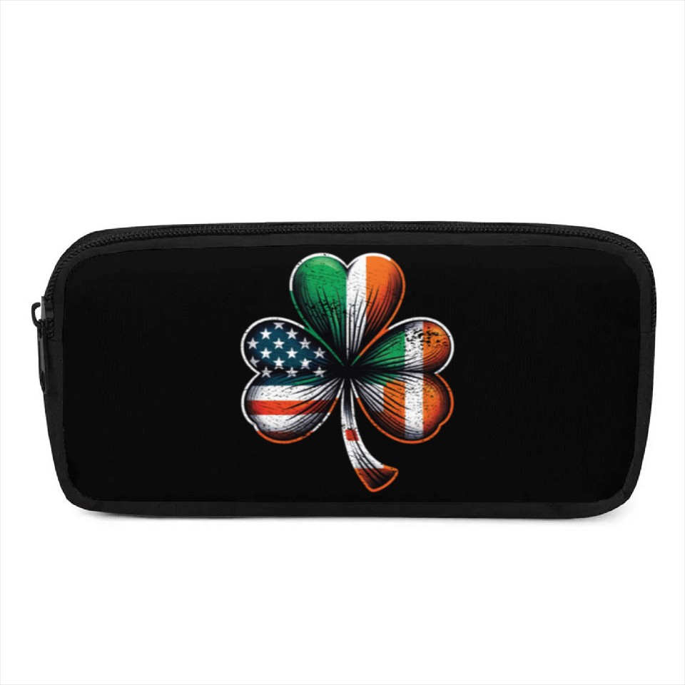 You are viewing an exclusive and elegant product Irish American Shamrock Stars Stripes Pencil Cases For Black belong theme Pencil Cases at Printblur