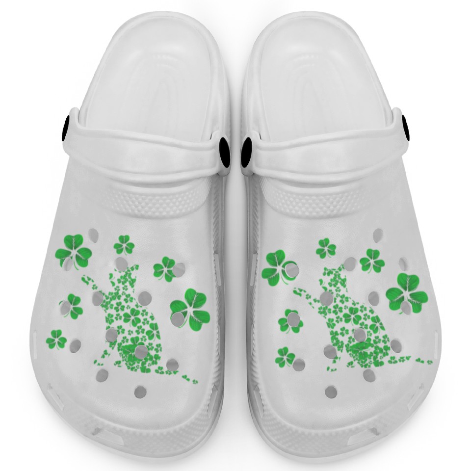 You are seeing a unique and impressive product Irish Cat Lover Ireland Clover Shamrock Clogs For Kids WHITE belong theme Clogs at Printblur
