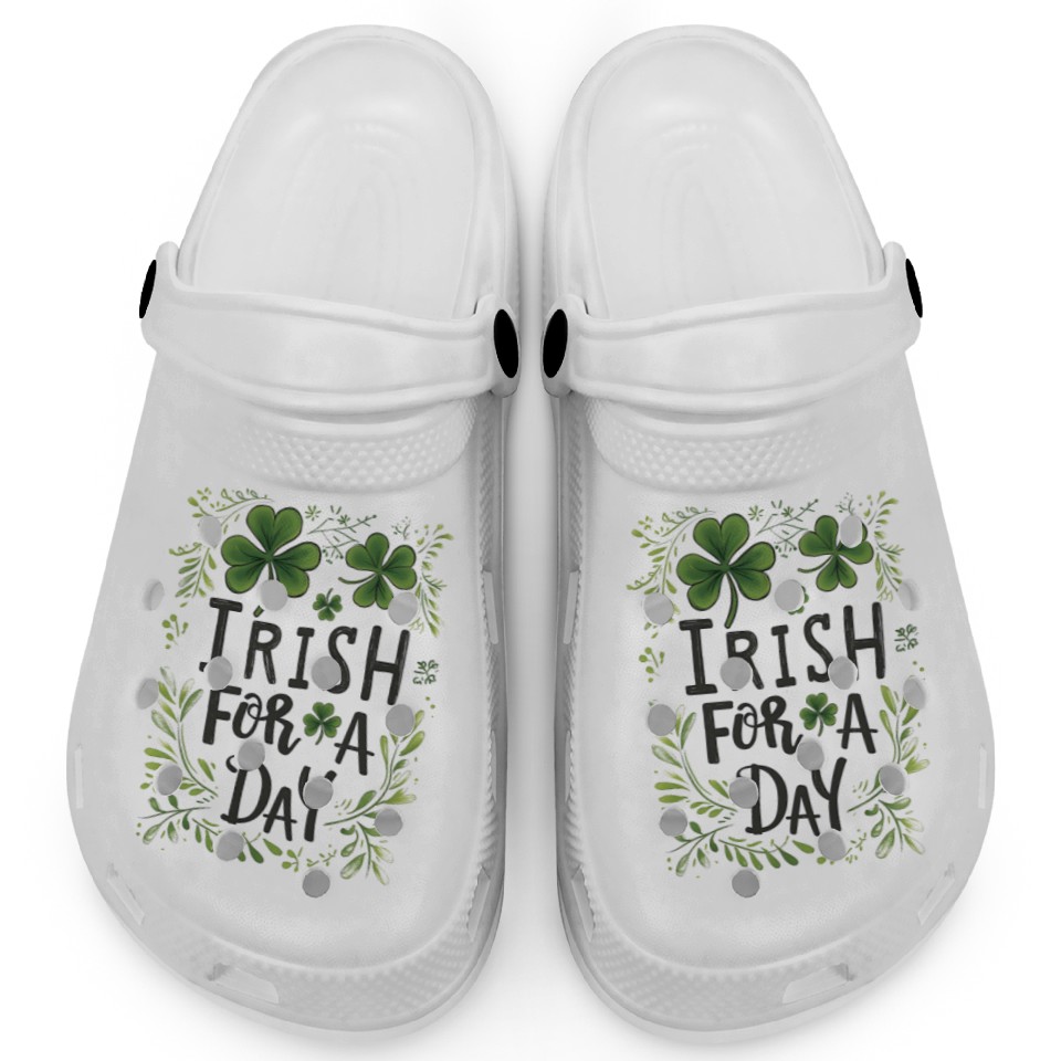 Irish For A Day Clover Shamrock Funny Clogs