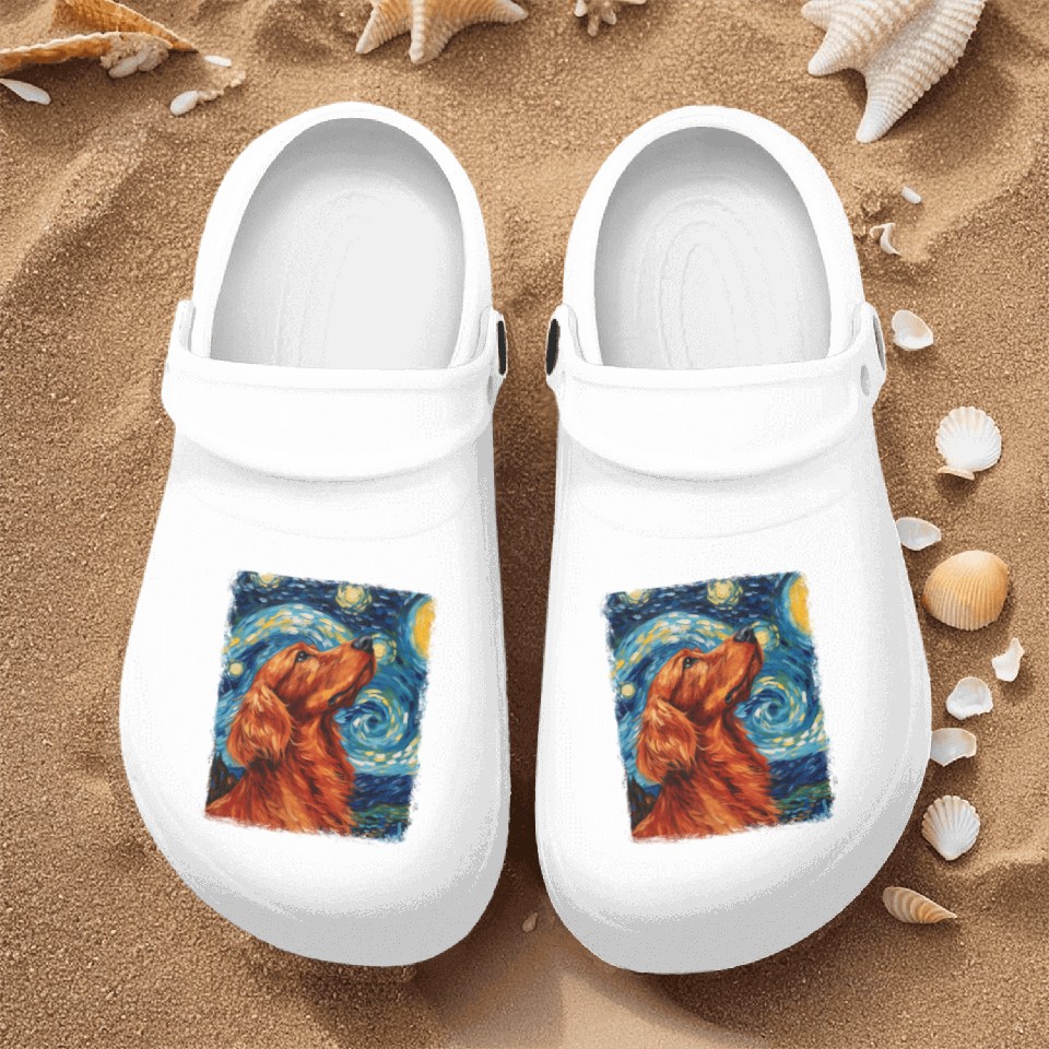 You are viewing one of the trendiest products Irish Setter Dog Starry Night Painting Nurse Clogs For Men WHITE belong theme Nurse Clogs at Printblur