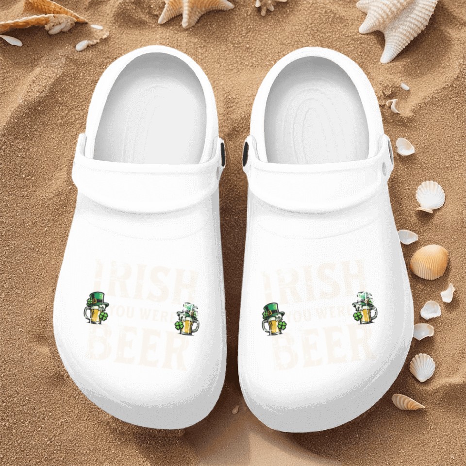 The product unique design you searched for is Irish You Were Beer – St. Patricks Day Nurse Clogs For Men WHITE belong theme Nurse Clogs at Printblur