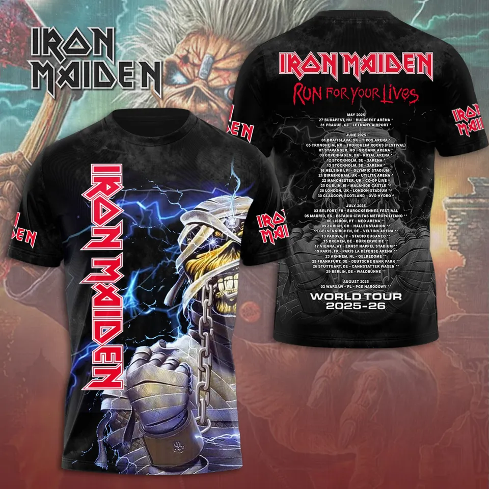Own fascinating Iron Maiden Run For Your Lives World Tour 2025 3D TShirt or see more 3D T Shirts products now from Printblur shop to enjoy your shopping time!
