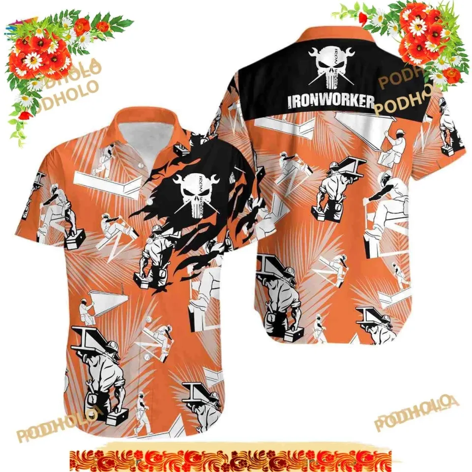 Shop for attractive Ironworker Skull Orange Funny Hawaiian Shirt or see more Hawaiians products on https://printblur.com right now!