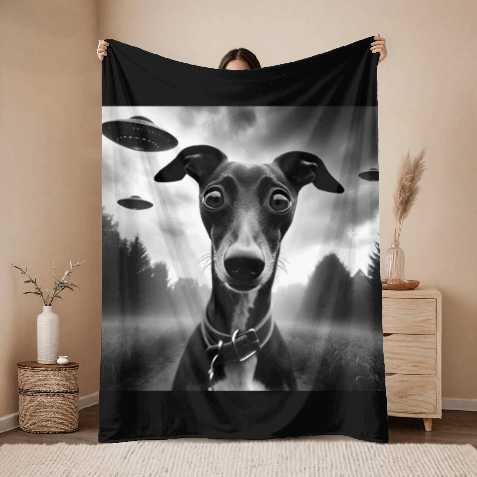 Shop for attractive Italian Greyhound Funny Graphic Selfie with UFO We Throw Blankets or see more Throw Blankets products on https://printblur.com right now!