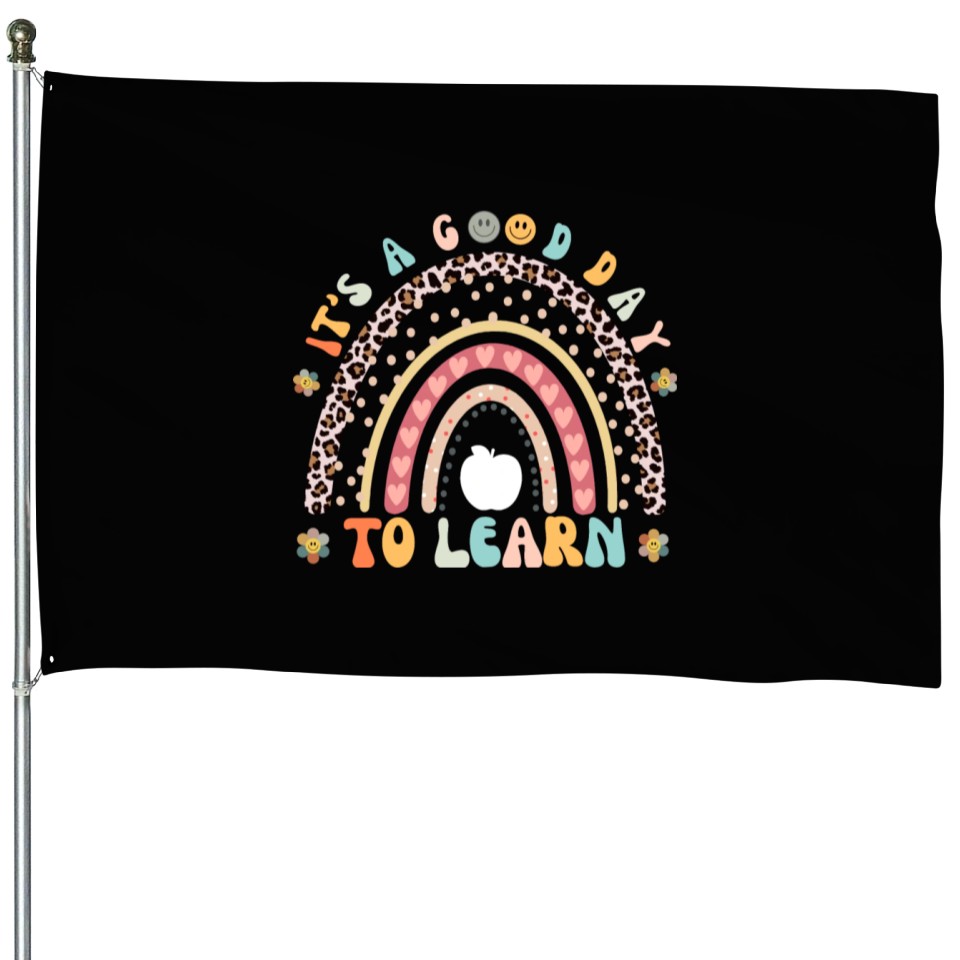 You are viewing one of the trendiest products It's a Good Day to Learn Preschool Teacher Rainbow House Flags For Black belong theme House Flags at Printblur