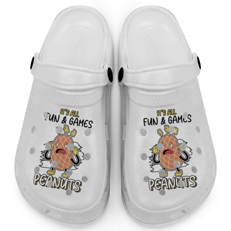 You're searching for a one-of-a-kind product It's All Fun And Games Until I See Peanuts Peanut Clogs For Kids WHITE belong theme Clogs at Printblur
