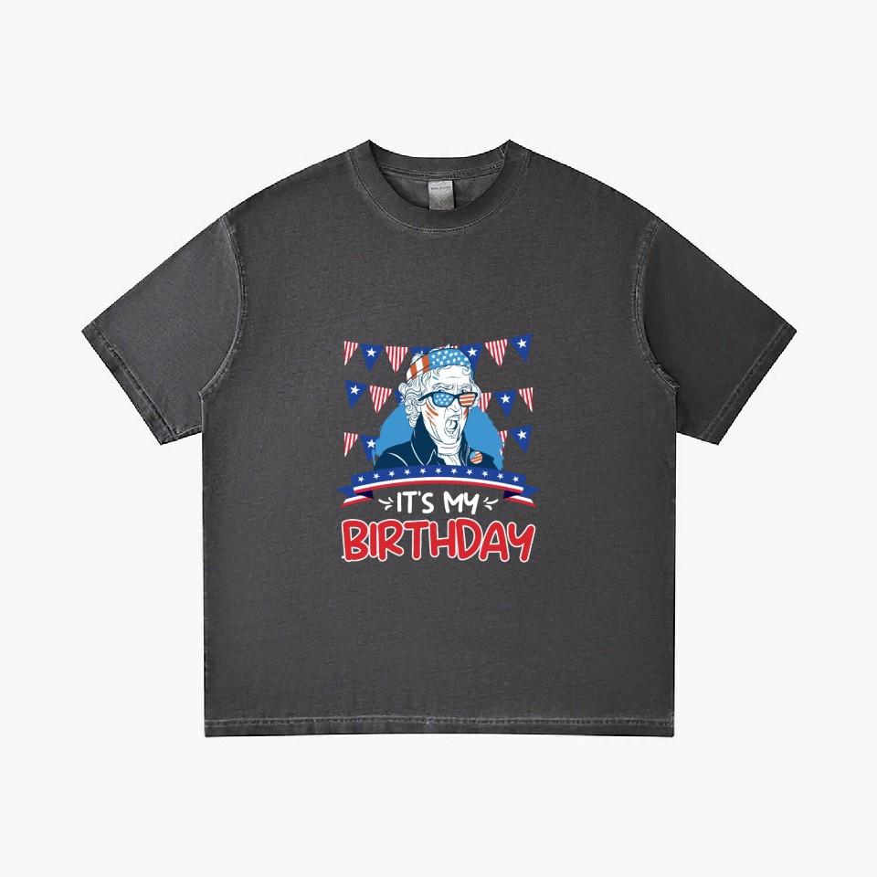 The item hot trend you're looking at is Its my Birthday Independence Day George Washington Gradient T Shirts For Men Washed Black belong theme Gradient T-Shirts at Printblur