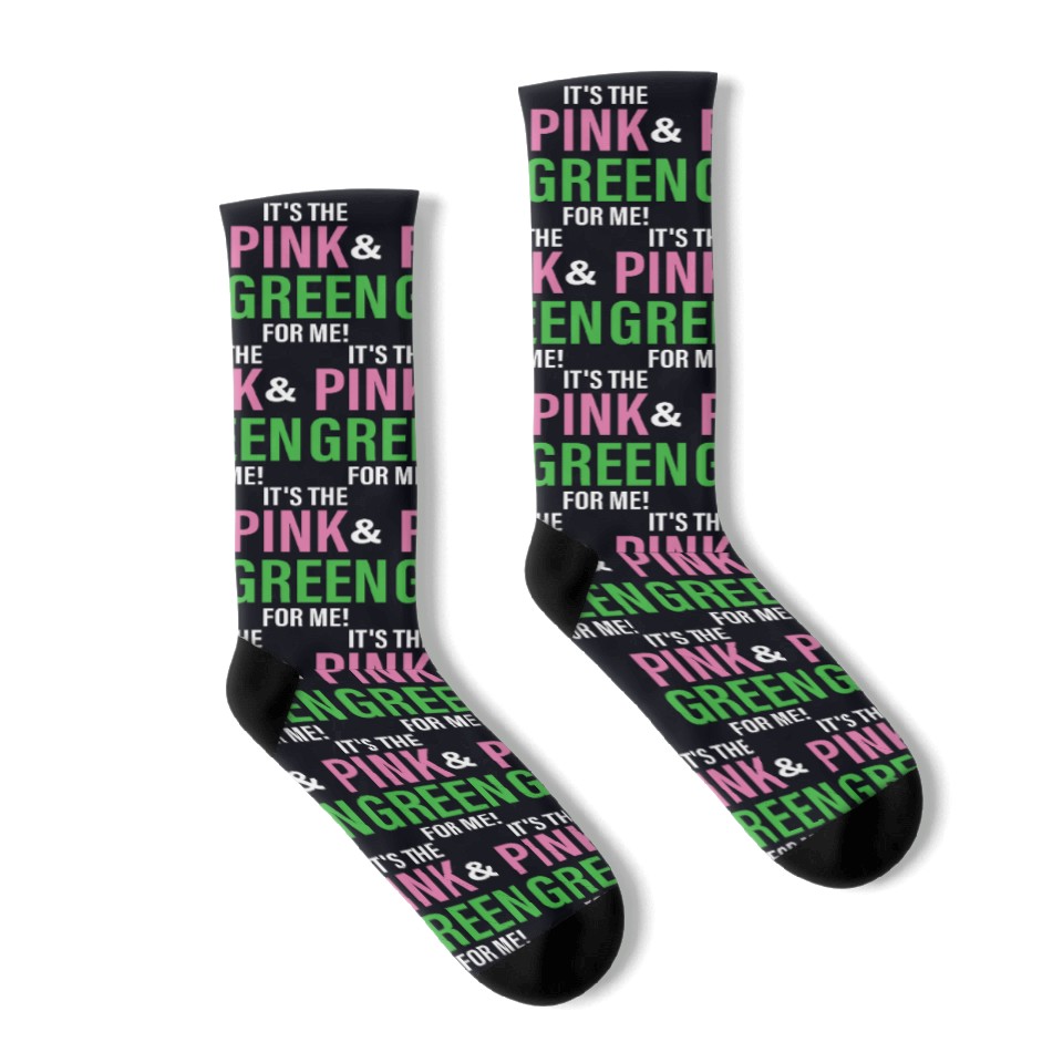 You are viewing an exclusive and elegant product It's The Pink and Green For Me Sorority Socks For Black belong theme Socks at Printblur