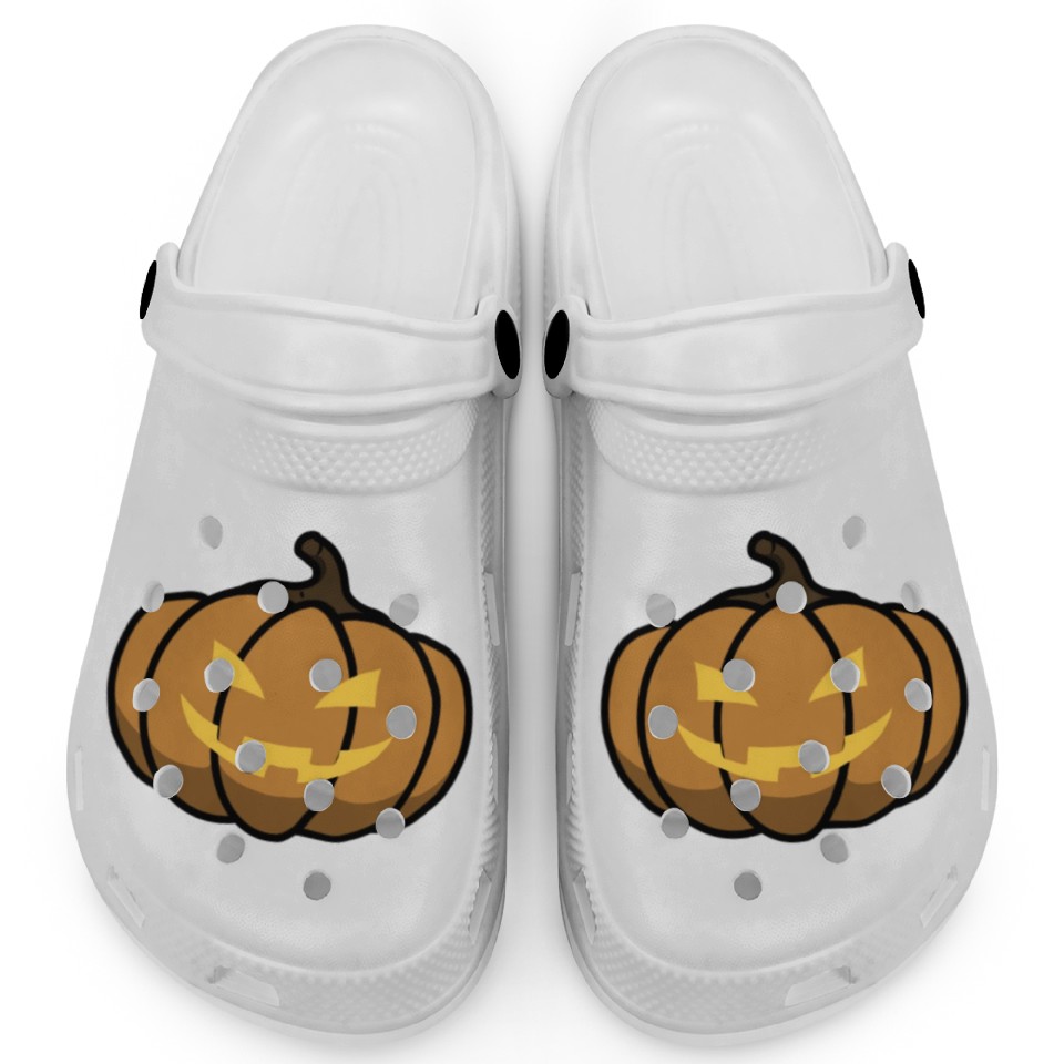 You're searching for a one-of-a-kind product Jack O Lantern Clogs For Kids WHITE belong theme Clogs at Printblur