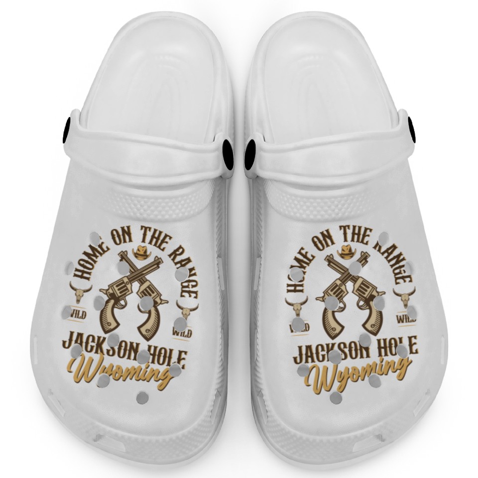 Buy eye-catching Jackson Hole Wyoming wild west town Clogs or see more Clogs products at Printblur shop now to explore many surprises from our shop!