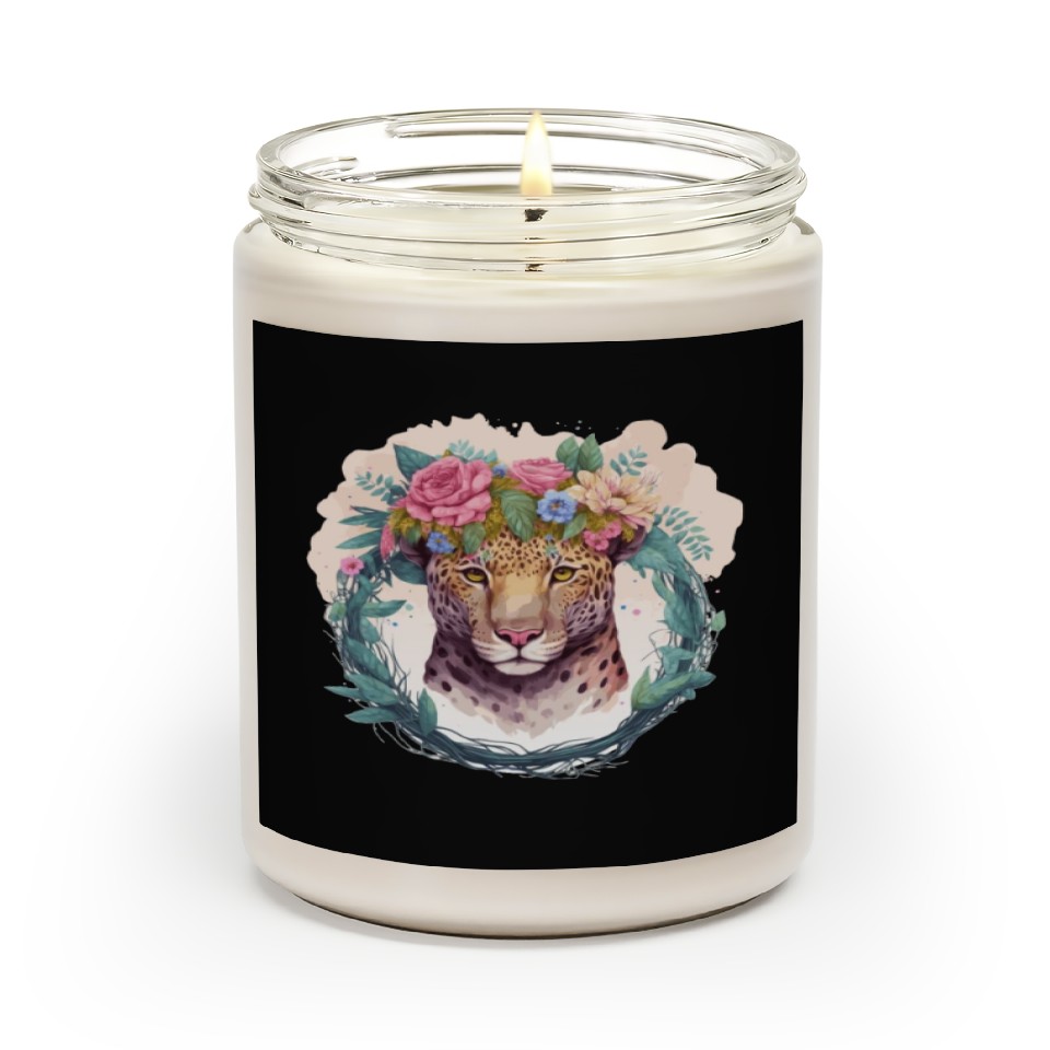 You are viewing an exclusive and elegant product Jaguar Flower Crown Floral Watercolor Scented Candles For Black belong theme Scented Candles at Printblur