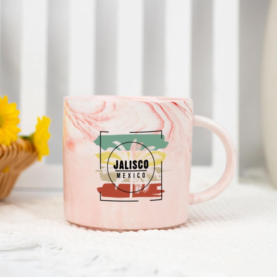 You're looking at the eye-catching product Jalisco Mexico Palm Tree Retro Artistic Marble Mugs For Pink belong theme Marble Mugs at Printblur