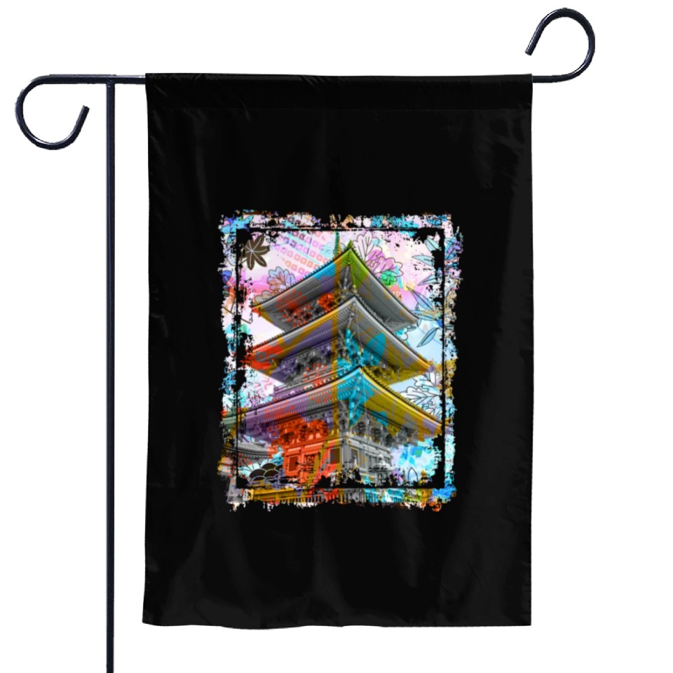 You're looking at the eye-catching product Japan Pagoda Cherry Blossoms Collage Art 70 Garden Flags For Black belong theme Garden Flags at Printblur