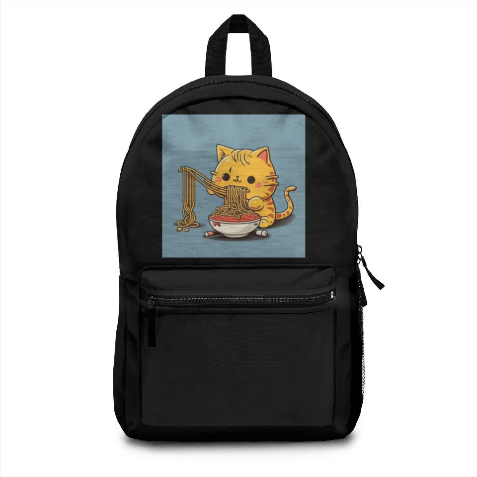 You are shopping for a stunning and trendy product Japanese cat eating spaghetti Backpacks For Black belong theme Backpacks at Printblur