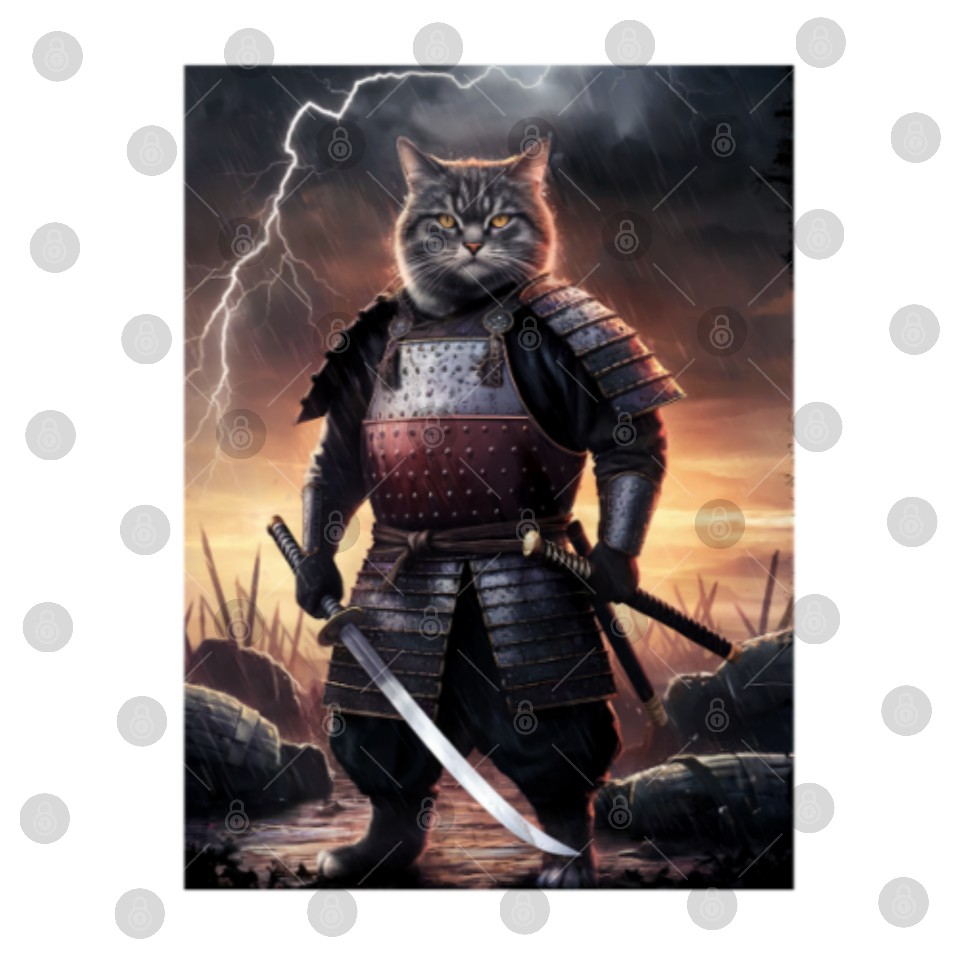You're taking a peek at the product Japanese Cat Samurai Cat Digital Files For WHITE belong theme Digital Files at Printblur