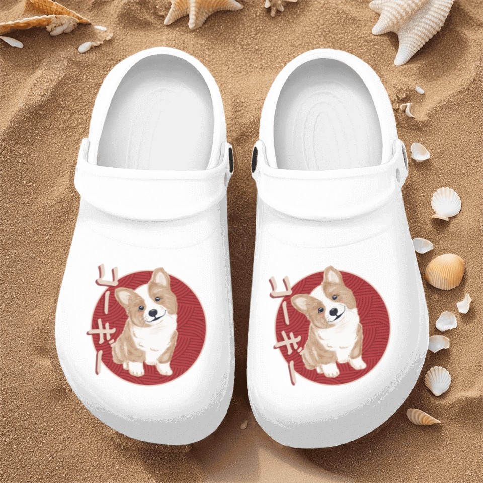 You are shopping for a stunning and trendy product Japanese Corgi Puppy Nurse Clogs For Men WHITE belong theme Nurse Clogs at Printblur
