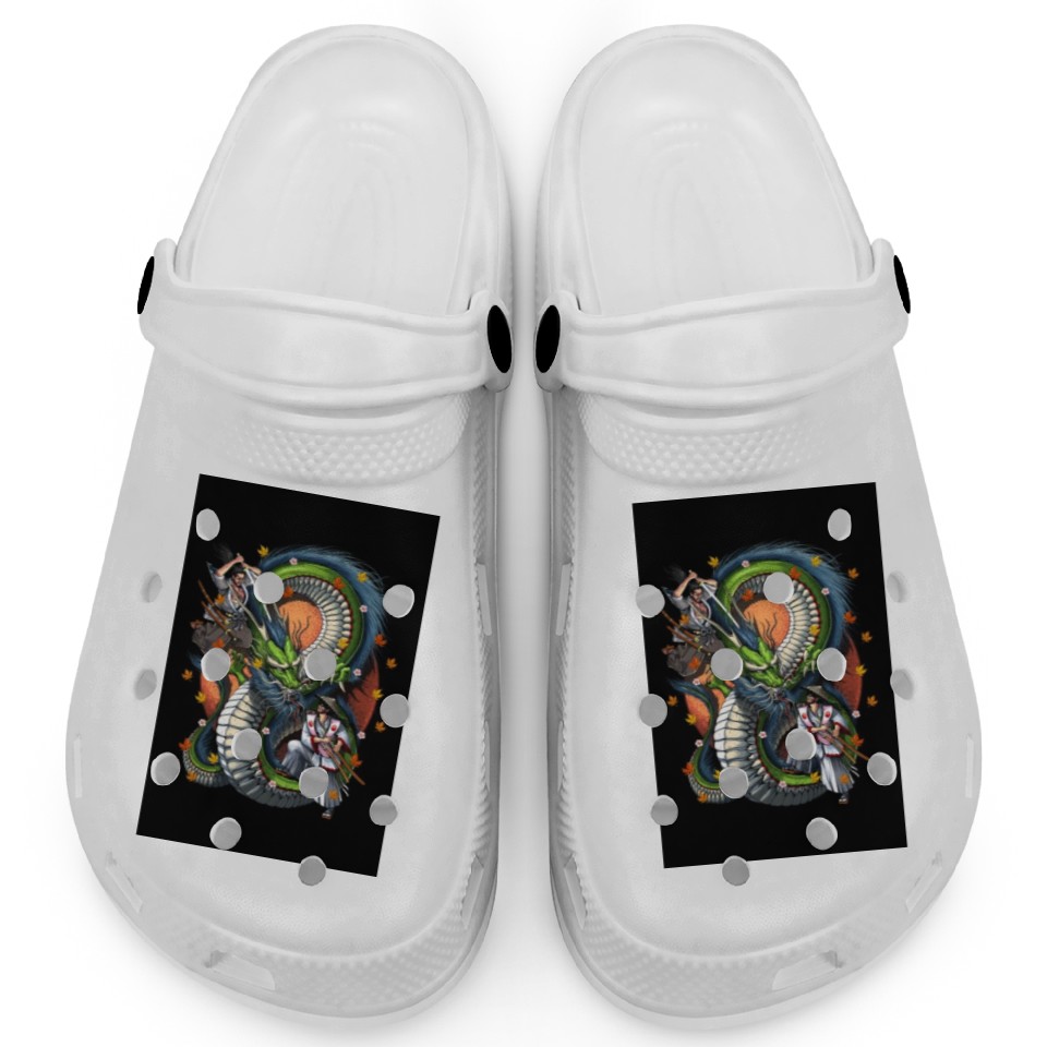 The item hot trend you're looking at is Japanese Dragon Samurai Warrior Battle Clogs For Kids WHITE belong theme Clogs at Printblur