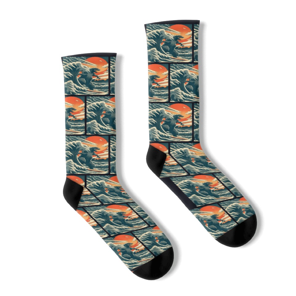 Own fascinating Japanese Monster Kaiju Funny Art Socks or see more Socks products now from Printblur shop to enjoy your shopping time!