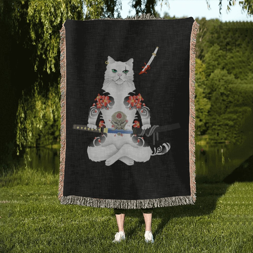 Shop for impressive Japanese Samurai Cat Katana Ninja Yakuza Tattoo Woven Blankets or see more Woven Blankets products right now on Printblur to enjoy your happiness!