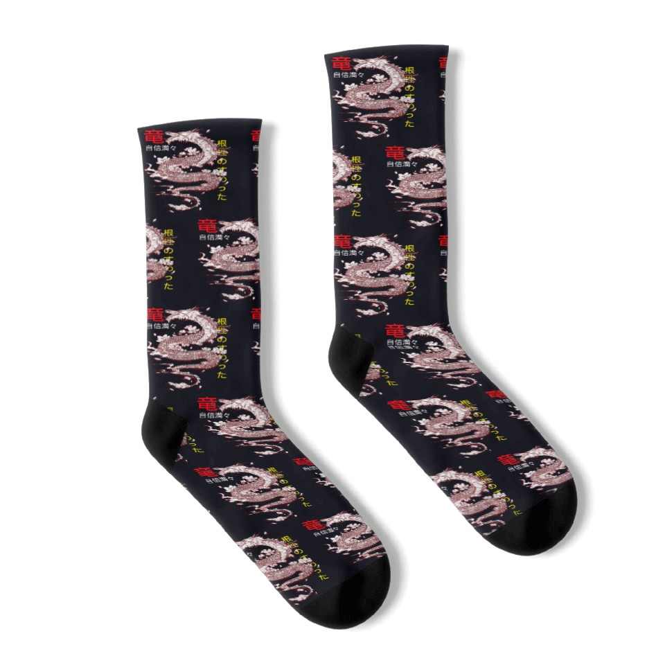 You are viewing one of the trendiest products Japanese Streetwear Retro Dragon Aesthetic Tokyo Socks For Black belong theme Socks at Printblur