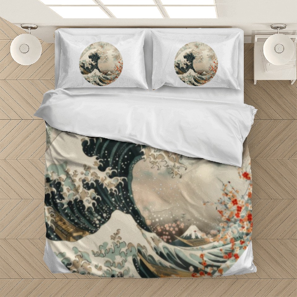 Own fascinating Japanese them floral wave graphic Bedding Sets or see more Bedding Sets products now from Printblur shop to enjoy your shopping time!