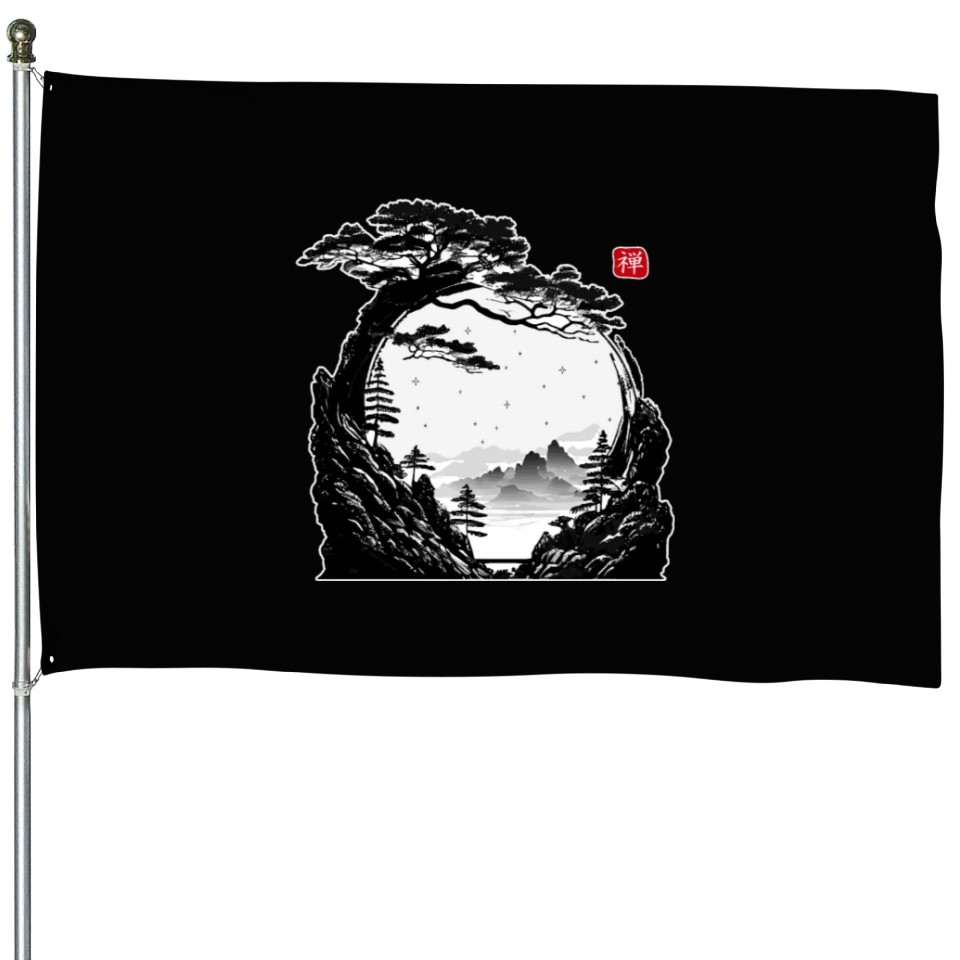 Shop for impressive Japanese Zen Circle Landscape Buddhism Bonsai Tree House Flags or see more House Flags products right now on Printblur to enjoy your happiness!