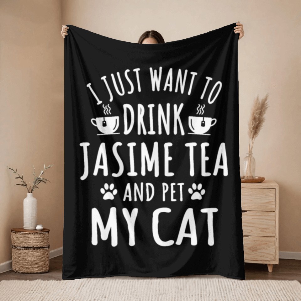 You are shopping for a stunning and trendy product Jasmine Tea And Cat Outfit Cats Owner Throw Blankets For Black belong theme Throw Blankets at Printblur