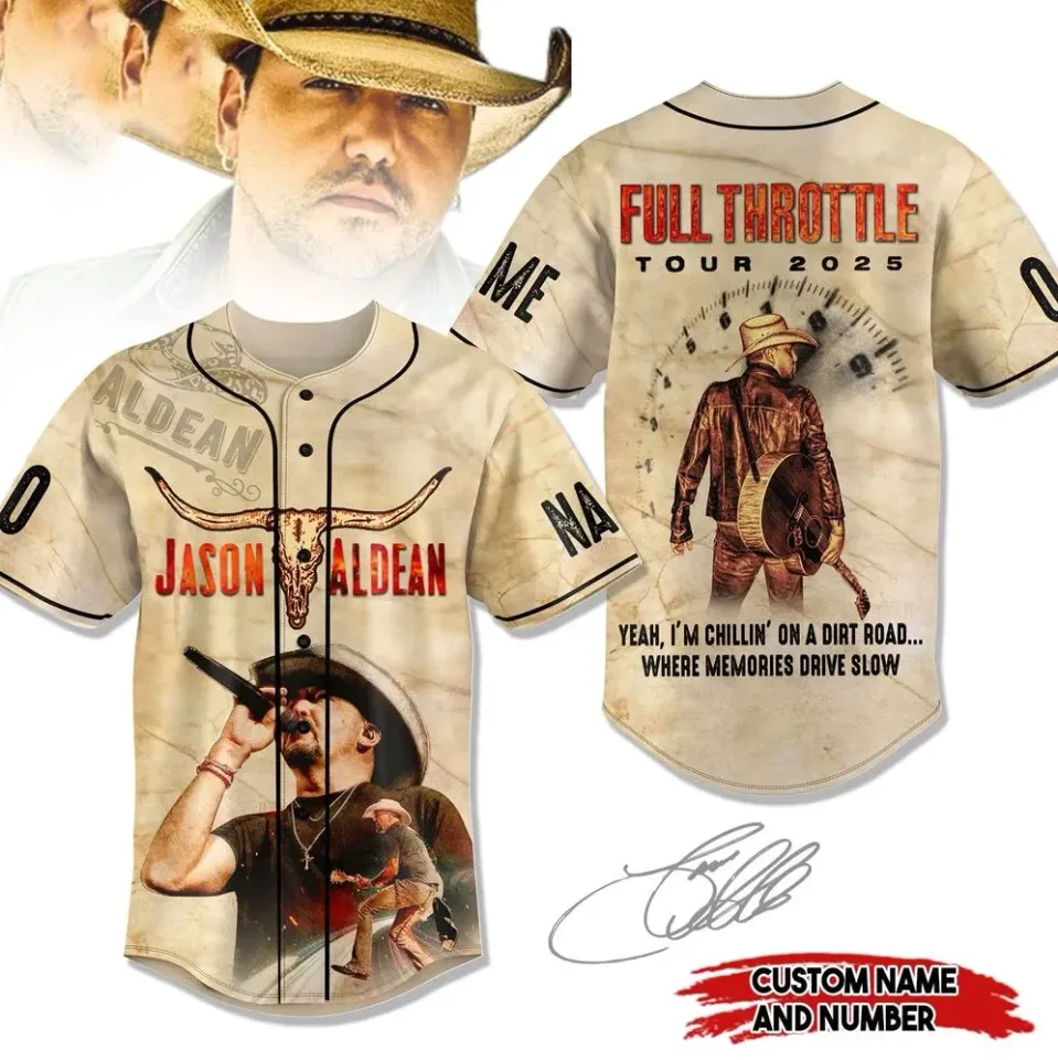 Shop for impressive Jason Aldean Full Throttle Tour 2025 Baseball Jersey or see more Baseball Jerseys products right now on Printblur to enjoy your happiness!