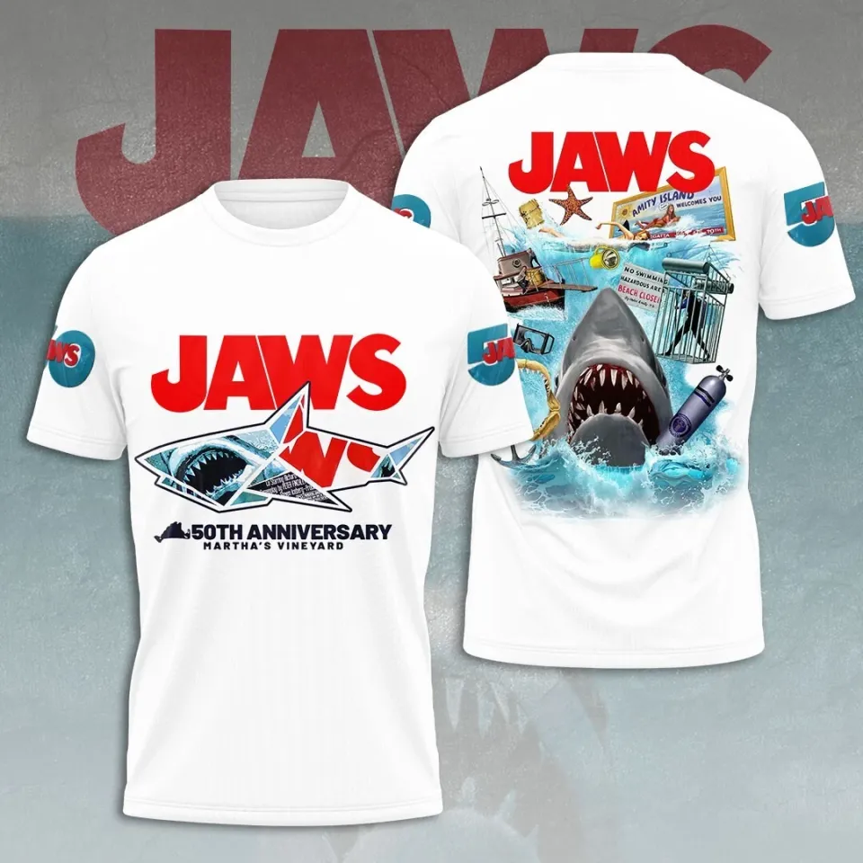 Own fascinating Jaws 3D T-Shirt 50th Anniversary 2025 or see more 3D T Shirts products now from Printblur shop to enjoy your shopping time!