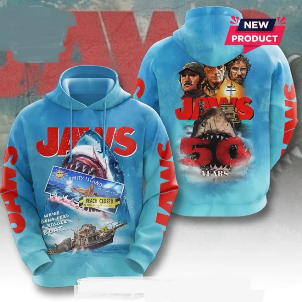 Shop for attractive Jaws 50th Anniversary Hoodie Jaws Shark Horror 3D or see more 3D Hoodies products on https://printblur.com right now!