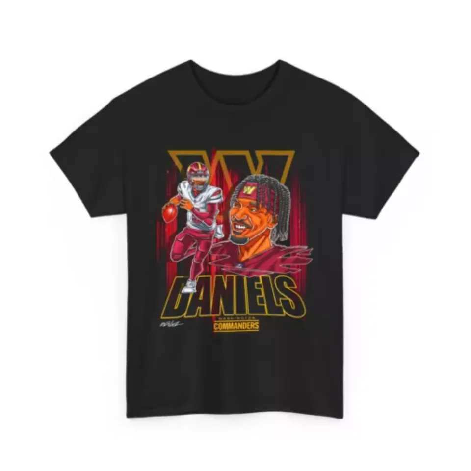 You are viewing one of the trendiest products Jayden Daniels Tee - football - Washington Commanders For Men Black belong theme T-Shirts at Printblur