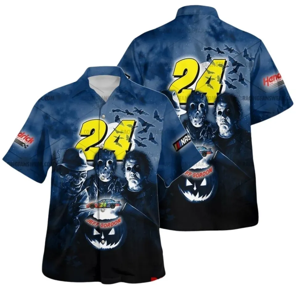 Own fascinating Jeff Gordon Naascar Racing Michael Myers Friends Horror Halloween Hawaiian Shirt or see more Hawaiians products now from Printblur shop to enjoy your shopping time!