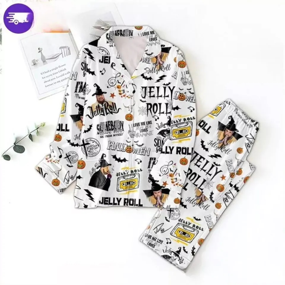 You're searching for a one-of-a-kind product Jelly Roll Happy Halloween White Pajamas Set For Kids belong theme Adult Pajamas Sets at Printblur